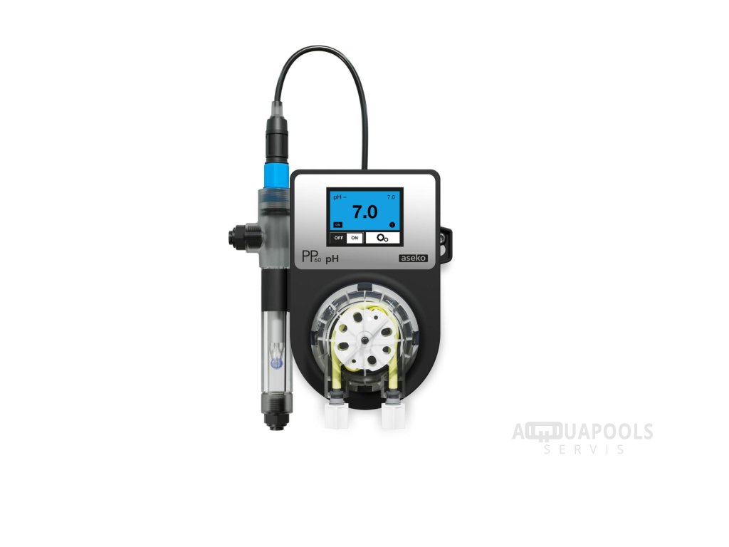 PP60 pH automaticky meria a reguluje hodnotu pH vody. Umožňuje dávkovanie pH-, alebo pH +.