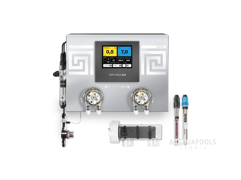 Najmodernejší elektrolyzér pre dezinfekciu bazénovej vody. Exkluzívne prevedenie, v ktorom sa podarilo zlúčiť riadenie a dávkovania do dokonale spracovaného nerezového celku s integrovaným meraním salinity (aktuálny obsah soli v bazénové vode) a dávkovaním algicidu pre komplexné udržanie kvality vody.