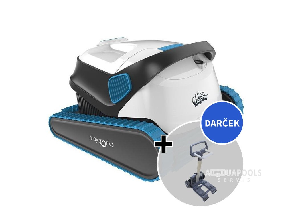 Bazénový vysávač Maytronics Dolphin S200 čistí dno, steny a vodnú linku, pre súkromné bazény do 12 m, 2 aktívne kefy zotrú aj tie najjemnejšie nečistoty, doba čistiaceho cyklu 2 hod., filter 20 a aj 100 μm
